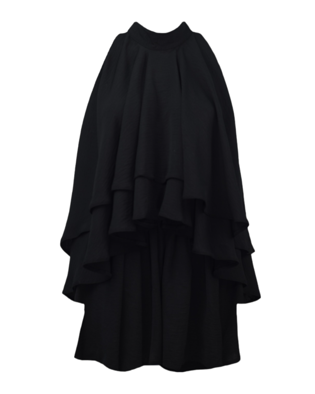 Ефирен черен къс летен сет изработен от висококачествена полиестерна материя .